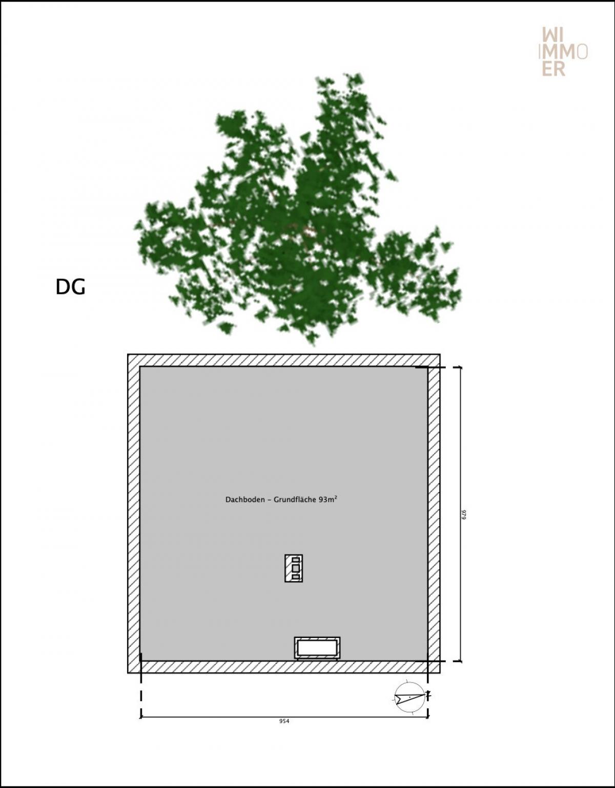 Das Dachgeschoss ist nicht ausgebaut und über eine Auszugsleiter erreichbar. Es bietet zusätzliche Nutzfläche sowie Ausbaupotenzial.