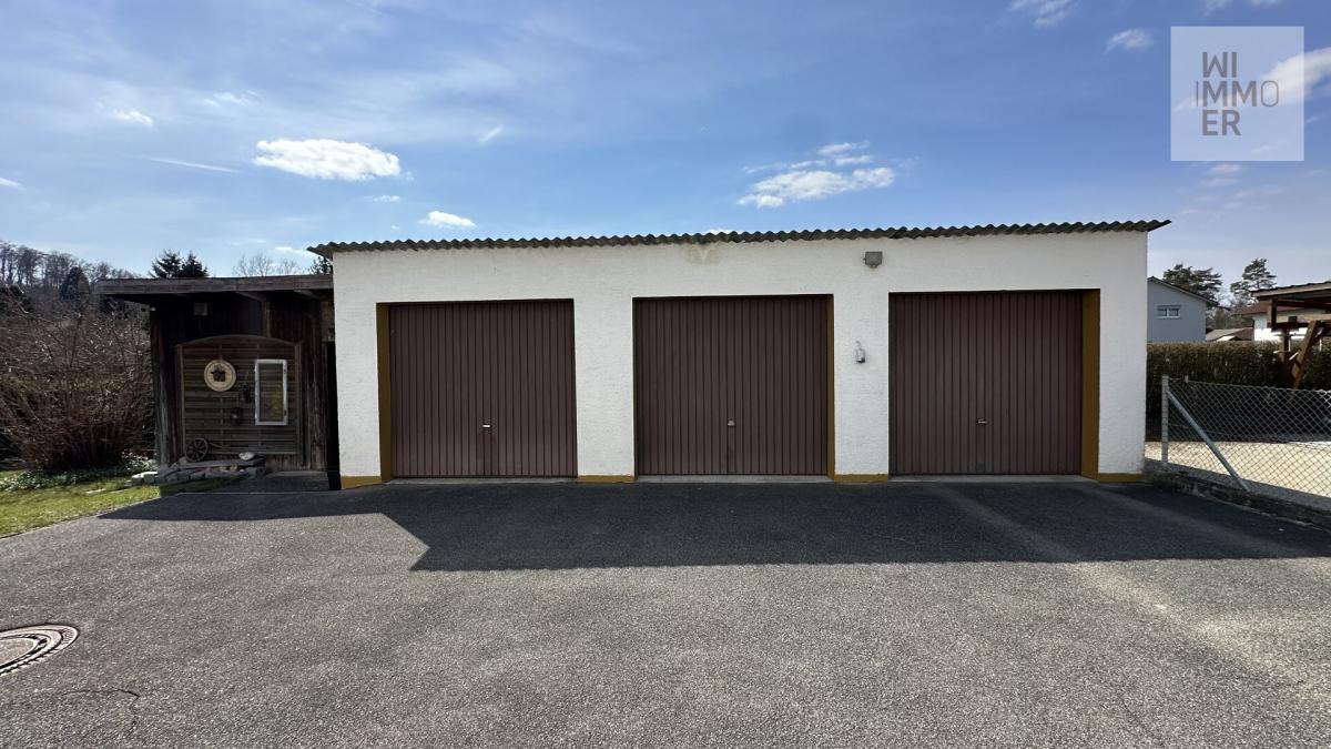 Drei Einzelgaragen sowie zusätzliche Stellplätze davor bieten ausreichend Platz für Ihre Fahrzeuge.