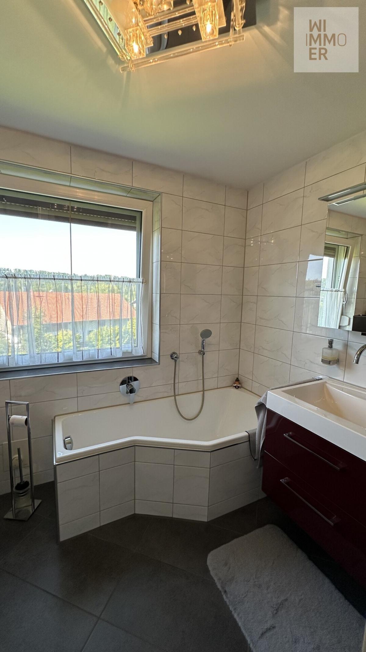 Im Obergeschoss warten drei Schlafzimmer sowie ein weiteres Tageslichtbadezimmer mit Badewanne und Dusche auf Sie. Zusätzlich gibt es auch in dieser Etage einen Abstellraum.