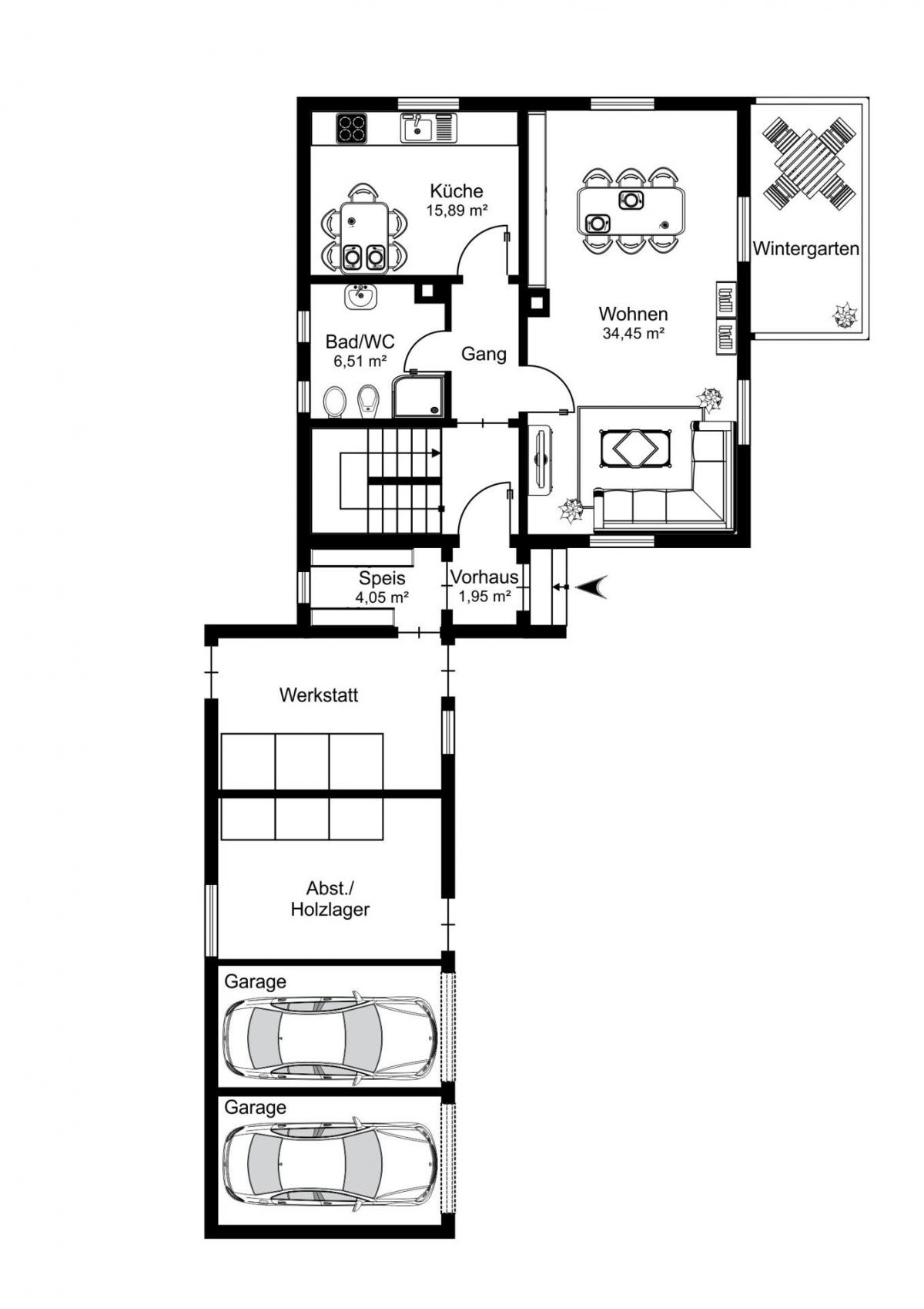 Auch Ihre Autos haben Ihren Platz. Dank zwei Garagen sind diese vor Wind und Wetter geschützt. Zusätzlich sind die Garagen über zwei Abstell-/Geräteräume mit dem Wohnhaus verbunden.